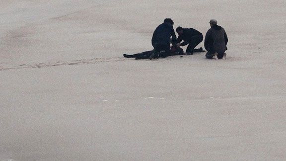 EFEMaya Gabeira é resgatada desacordada. Foi encaminhada ao hospital, mas passa bem.