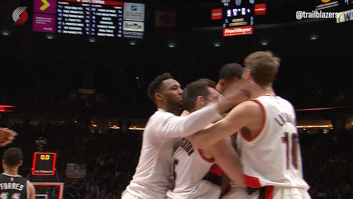 Os Spurs venciam por 98 a 97, com 12 segundos para o fim. Na última jogada da partida, os Blazers tentaram a virada em infiltração de Shabazz Napier, mas ele acabou desarmado, aparentemente. Acontece que o armador conseguiu dar um tapa na bola em meio a dois marcadores no garrafão, deixando a cesta da vitória nas mãos de Noah Vonleh.