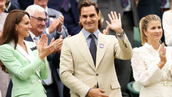 Dono de oito títulos do Grand Slam em Londres, o suíço foi aplaudido pelos torcedores presentes na quadra central, e se posicionou no camarote real ao lado de Kate Middleton, princesa de Gales.