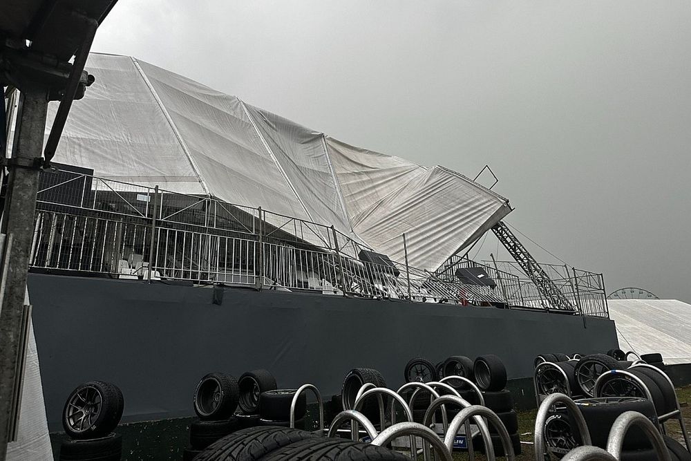 Forte chuva em Interlagos causa colapso de estruturas no GP de São Paulo.