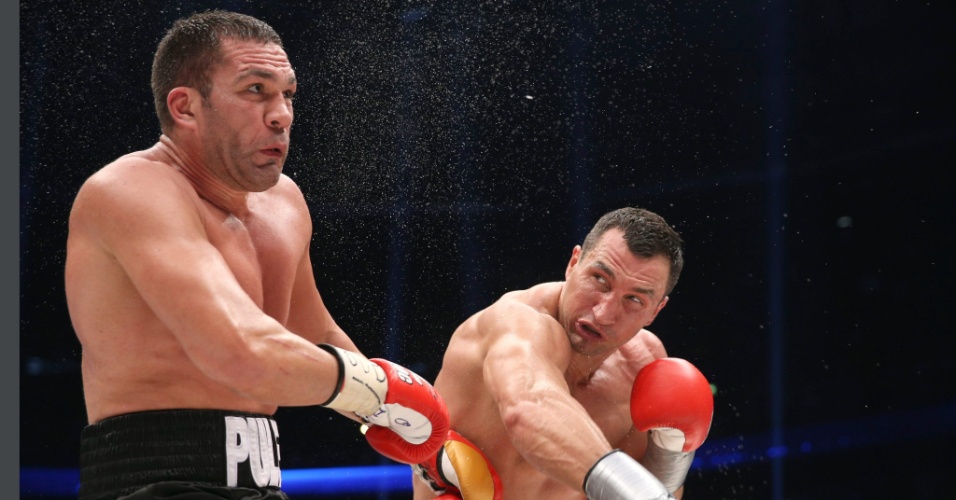 15.11.2014 – Wladimir Klitschko acerta búlgaro Kubrat Pulev em disputa pelo cinturão dos pesados em Hamburgo Leia mais EFE/EPA/Christian Charisius