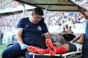 ‘’O Esquadrão informa que o atleta Marcos Victor sofreu uma lesão ligamentar no joelho durante a final do Campeonato Baiano, conforme constatado em ressonância magnética, e já iniciou tratamento. Desejamos uma ótima recuperação, zagueirão!’’ publicou o Bahia nas redes sociais.