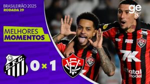No duelo direto na parte de baixo da tabela, o Santos permitiu o Vitória se aproximar e esquentou a briga contra o rebaixamento no Campeonato Brasileiro. O Leão calou a Vila Belmiro nesta segunda-feira ao vencer o confronto por 1 a 0, com gol de Matheuzinho, de pênalti, no confronto que marcou o encerramento da 29ª rodada.