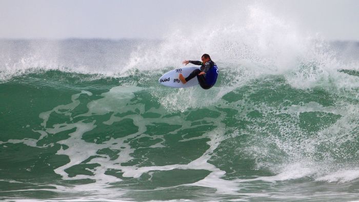 Bateria 1: Bede Durbidge (AUS) 15.77, Nat Young (USA) 14.10, Tiago Pires (PRT) 9.90